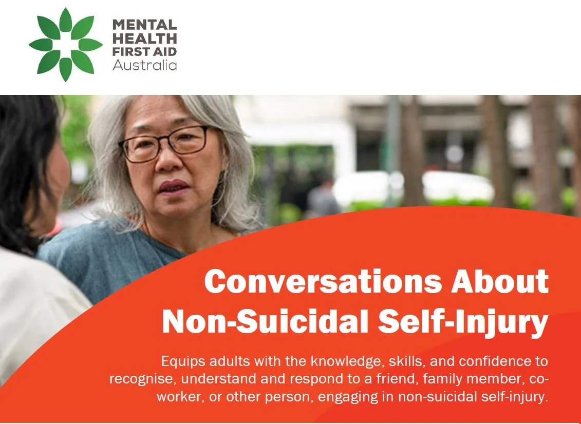 Equips adults with the knowledge, skills, and confidence to recognise, understand and respond to a friend, family member, co-worker, or other person, engaging in non-suicidal self-injury.